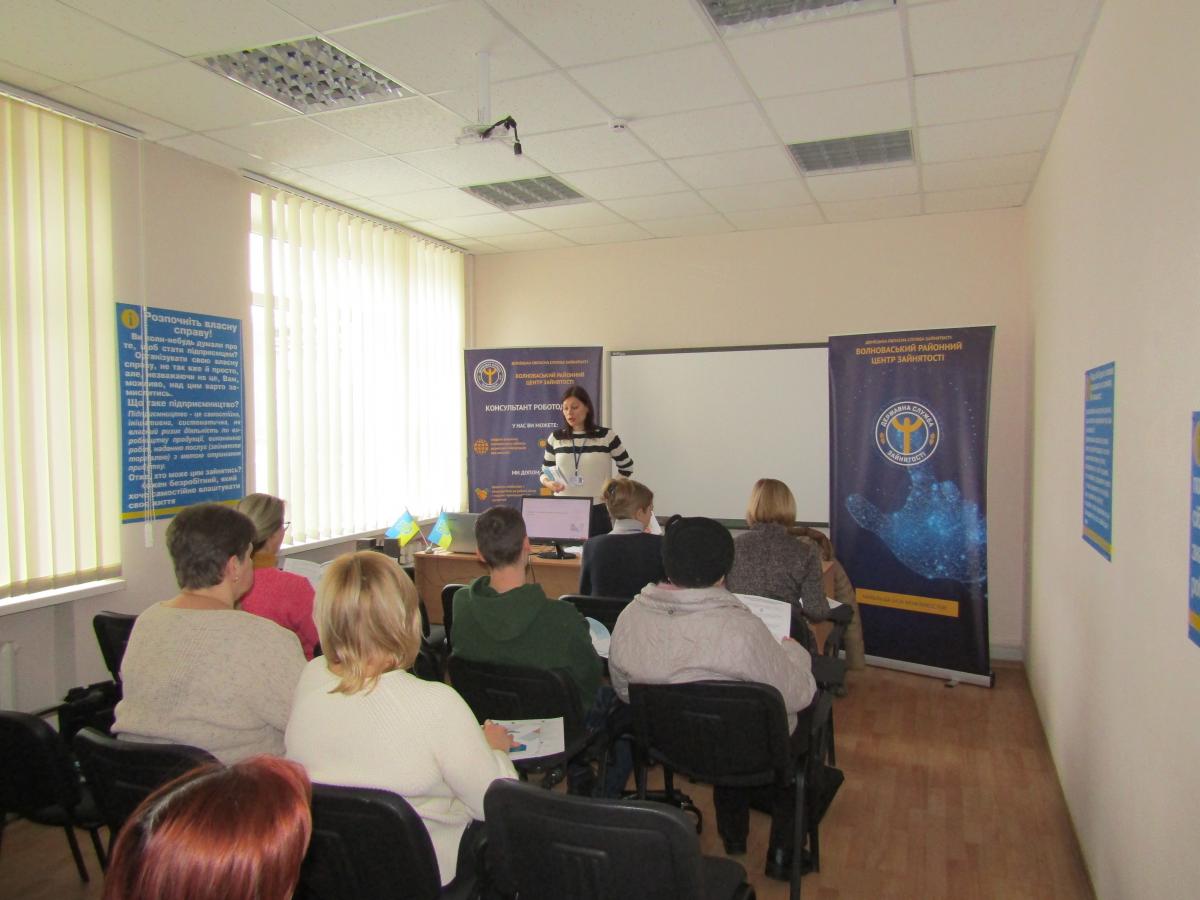 26 лютого у Центрі розвитку підприємництва Волноваського районного центру зайнятості пройшов тренінг для фізичних осіб-підприємців за участі керівниці групи юридичного відділу Данської Ради у справах біженців в Україні Оксани Бондаренко.