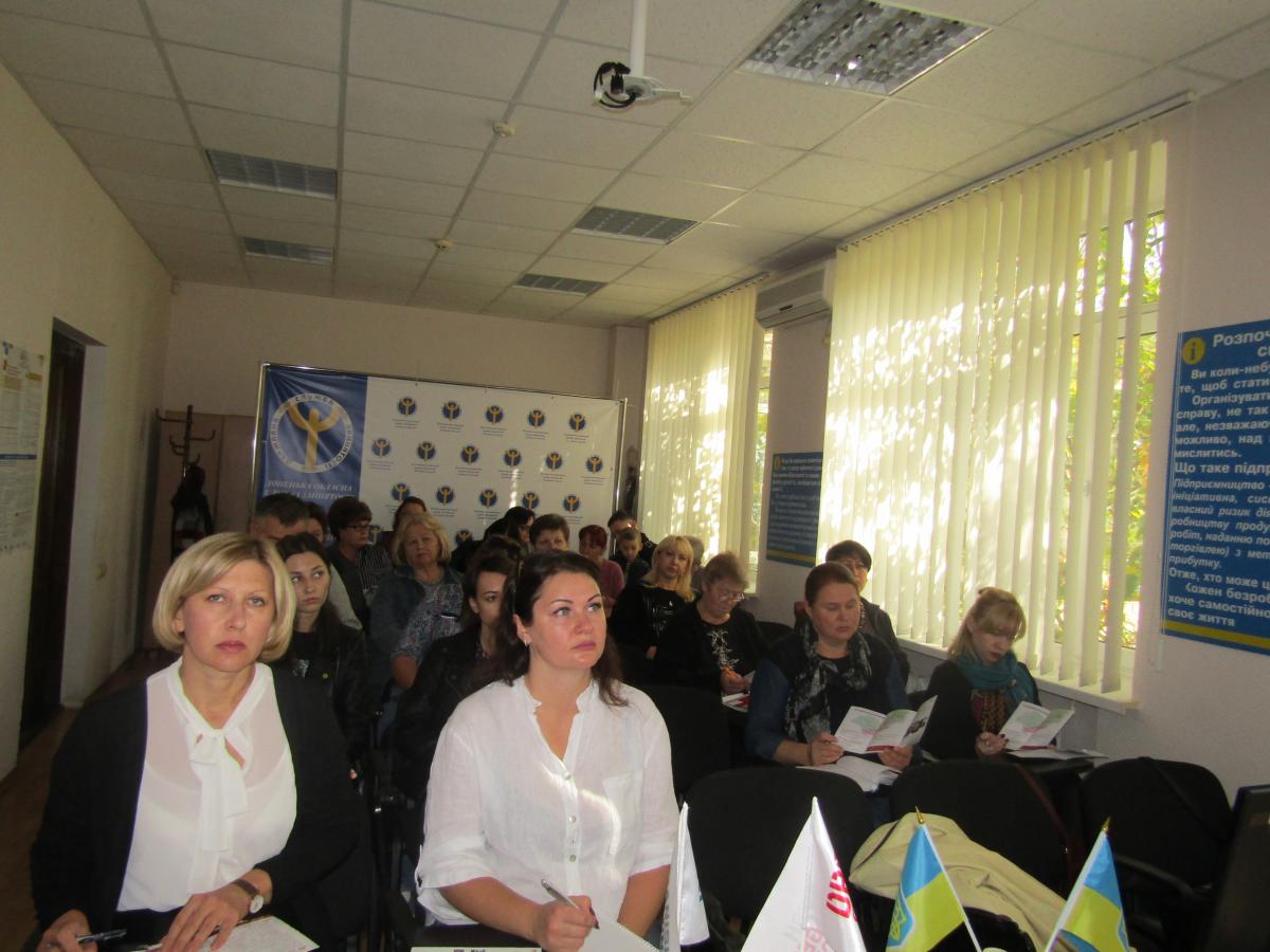 Учасників заходу ознайомили з інформацією щодо участі у програмі “Економічного розвитку східної України” на отримання грантів від Данської ради у справах біженців на навчання, розширення свого бізнесу і створення нових робочих місць.