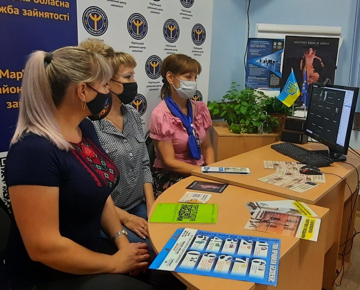 В цей день фахівці Мар’їнського районного центру зайнятості та Мар’їнської міської військово-цивільної адміністрації провели для безробітних і роботодавців низку заходів, покликаних попередити потрапляння у ситуацію торгівлі людьми громадян України.