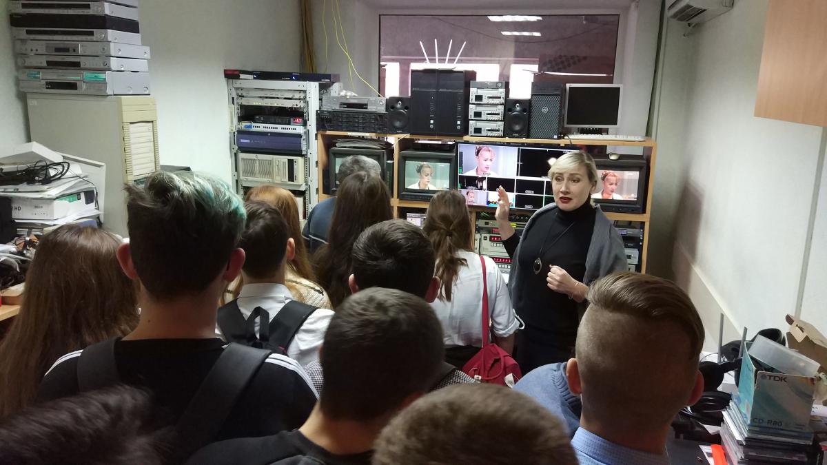 Знайомство з телевізійною «кухнею» розпочалося з відвідування павільйону, де співробітники телекомпанії готують та записують сюжети, за якими глядачі спостерігають у випусках новин. Школярі долучилися до створення телевізійних сюжетів, дізналися про функції кожного співробітника телекомпанії, почули цікаві історії з життя творчого колективу та отримали корисні поради від професіоналів. Потім дітям розповіли як створюються цікаві сюжети та передачі. Оператор розкрив тонкощі своєї роботи: як плануються, готуються, а потім знімаються різноманітні сюжети. До розмови з учнями приєднались і журналісти, які розповіли про переваги своєї роботи і зауважили, що для представника творчої професії важливо бути комунікативною та відкритою людиною.