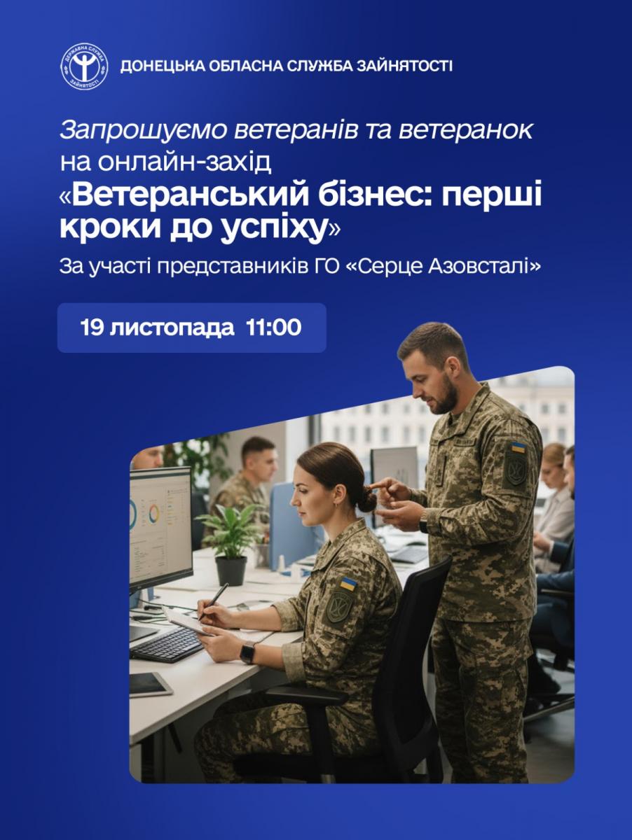 Донецький обласний центр зайнятості запрошує захисників та захисниць на інформаційний захід, присвячений започаткуванню та розвитку власної справи.