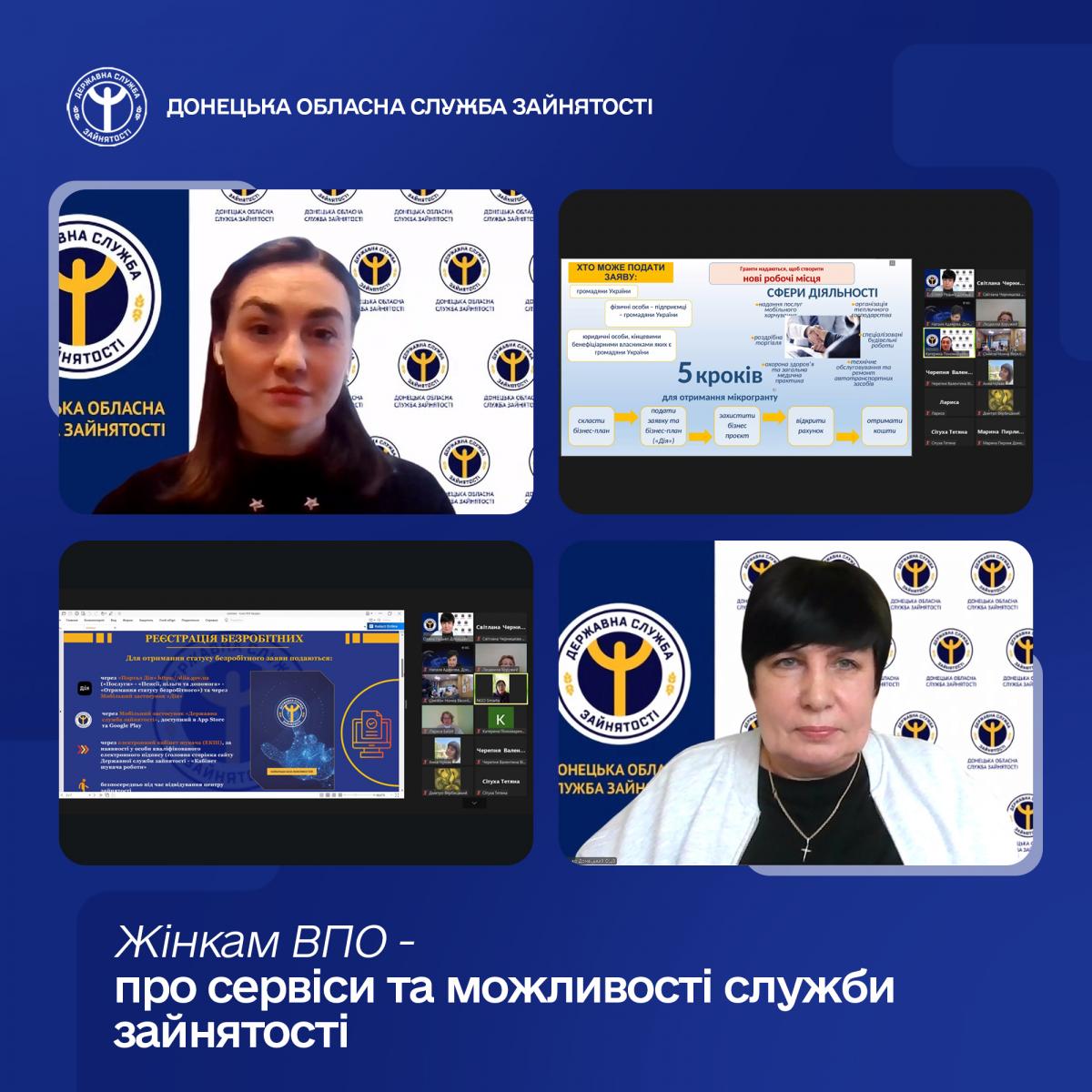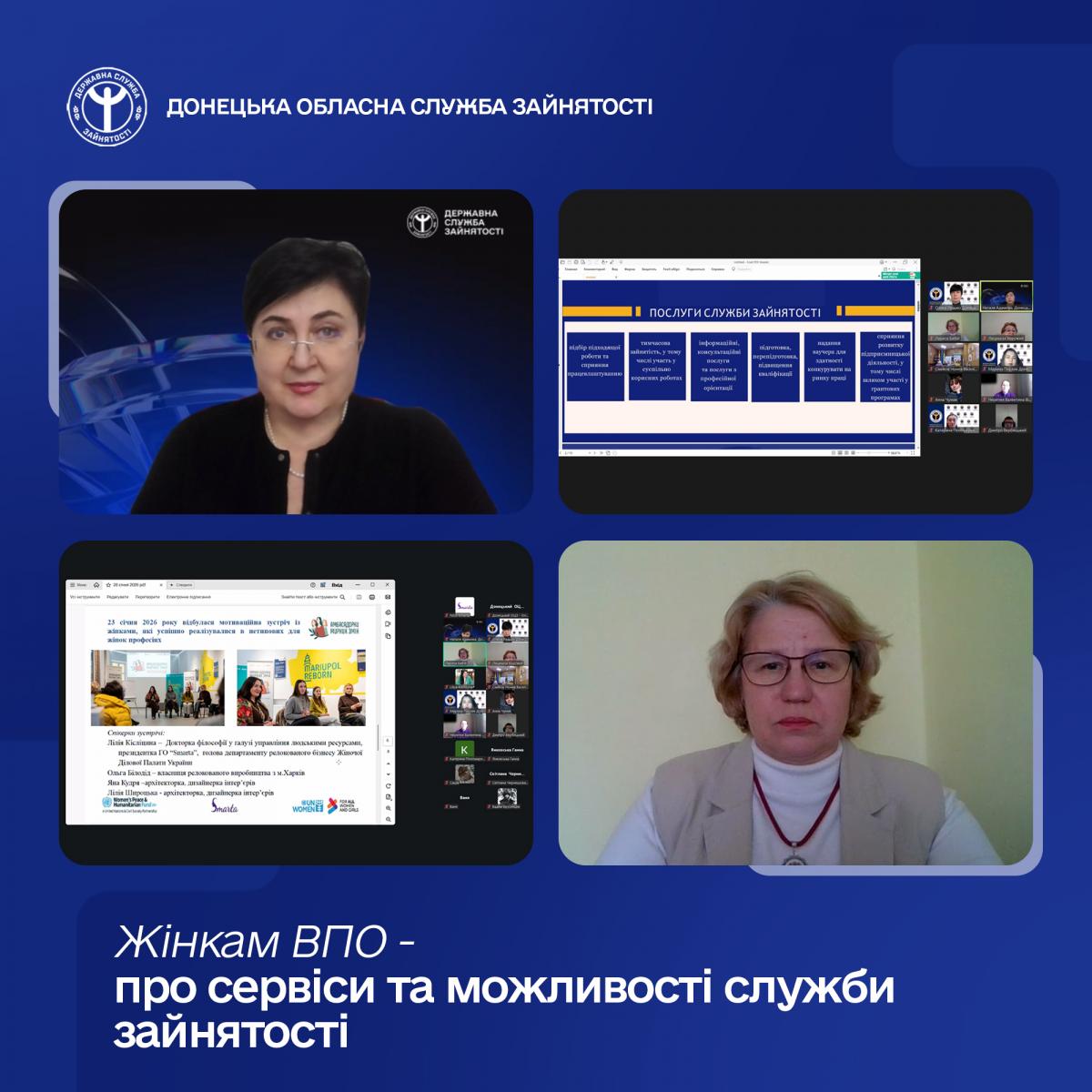 28 січня відбулася онлайн-зустріч для жінок за участі директорки Донецького обласного центру зайнятості Наталі Адамової, організована у співпраці з жіночою громадською організацією Smarta.