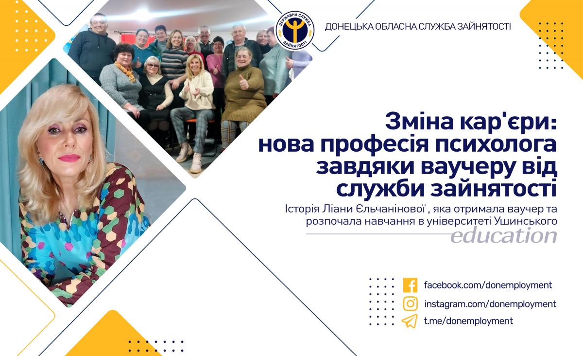 Після того, як жінка дізналася про можливість отримати ваучер на навчання від служби зайнятості, вона вирішила скористатись такою нагодою. Ліана звернулась до Краматорського міського центру зайнятості, де отримала консультацію та допомогу у виборі навчального закладу. Вона подала заявку та отримала ваучер. Наразі, жінка безкоштовно навчається у магістратурі за спеціальністю "психологія, екстремальна кризова психологія" в університеті Ушинського.
