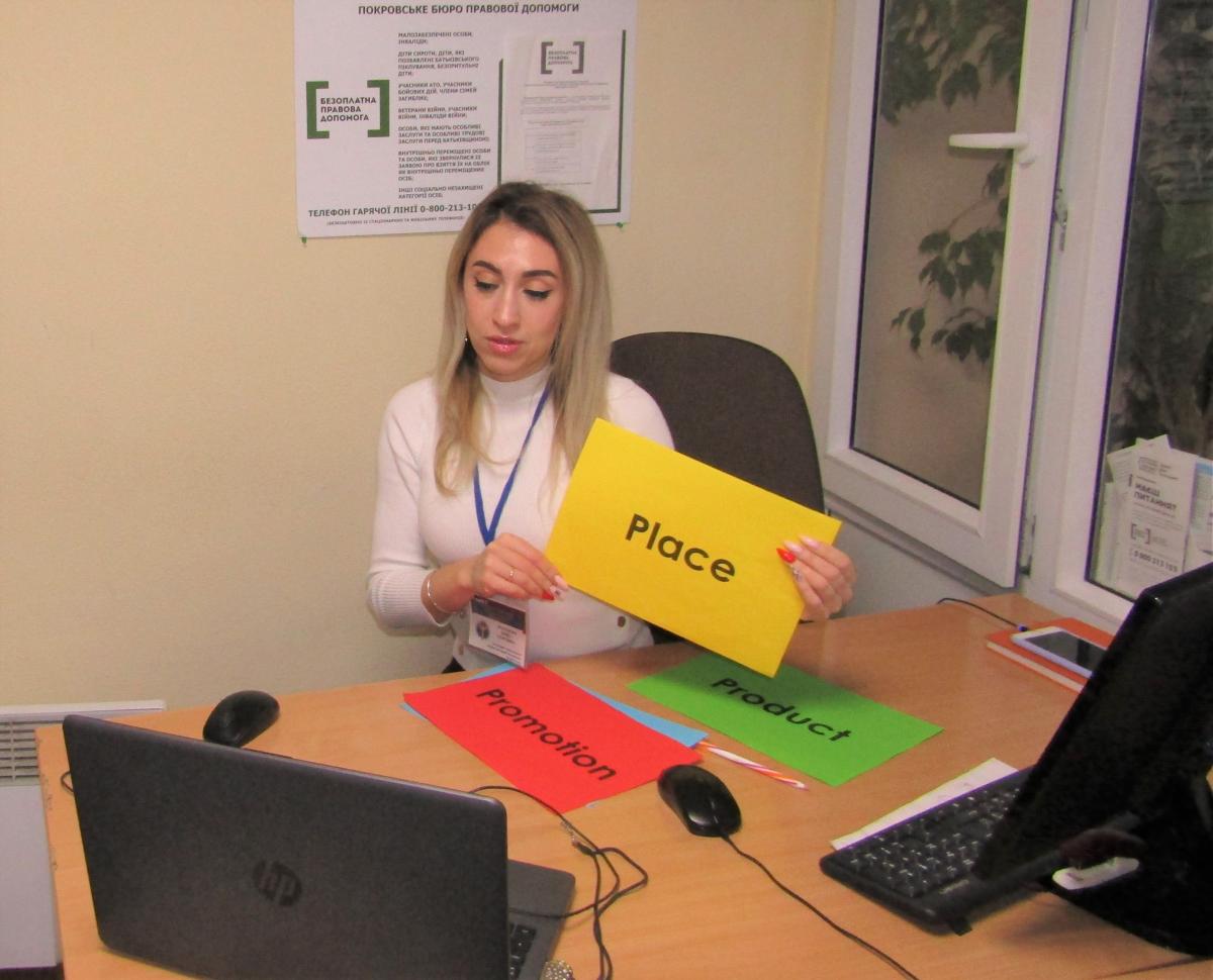 Під час заняття підлітки дізналися про основні визначення бізнесу: «підприємець», «самозайнятість», «підприємницька діяльність», «бізнес ідея» та «бізнес-план». За допомогою інтерактивної вправи «4P» підлітки змогли крок за крок правильно вибудувати власну маркетингову стратегію, за допомогою вправи визначили етапи побудови маркетингового плану та його особливості.