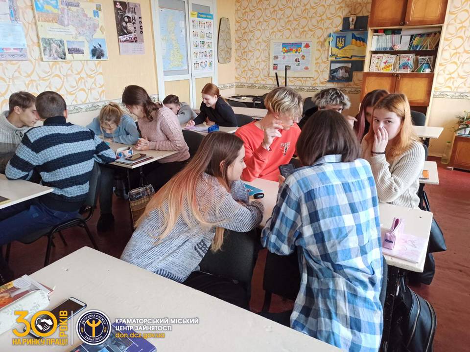 26 листопада фахівчиня Краматорського міського центру зайнятості Наталія Хомчукова провела інтерактивний захід в рамках «Бізнес школи молодого підприємця» для учнів 11 класу загальноосвітньої школи №15 міста Краматорська.