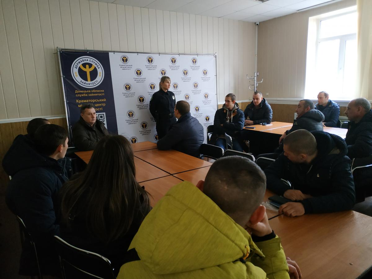 23 січня сектором рекрутингу Краматорського міського центру зайнятості проведено презентацію роботодавця для Патрульної поліції. Представники Батальйону патрульної поліції в містах Краматорськ та Слов’янськ розповіли присутнім, що триває набір до Патрульної поліції. У заході взяли участь 17 безробітних осіб, які стоять на обліку в Краматорському міському центрі зайнятості та 1 запрошений сектором рекрутингу.
