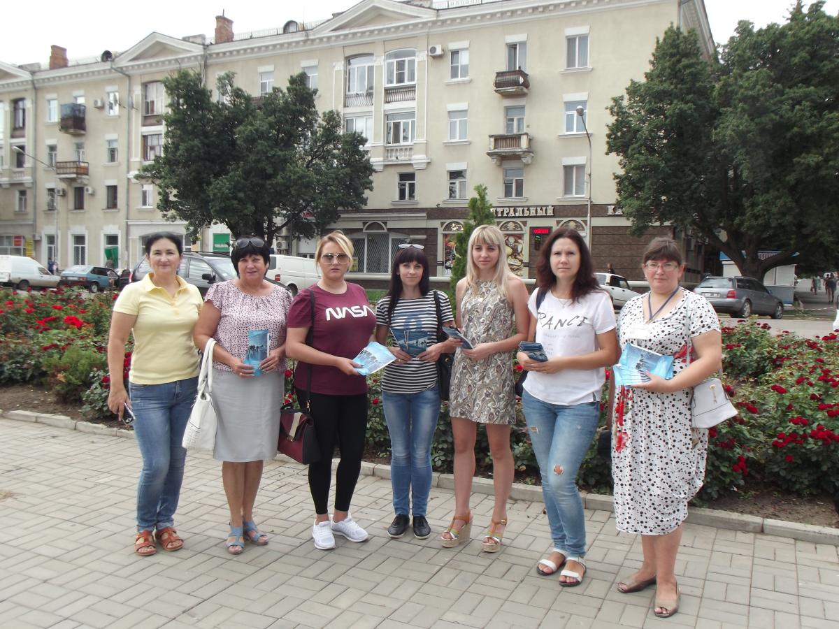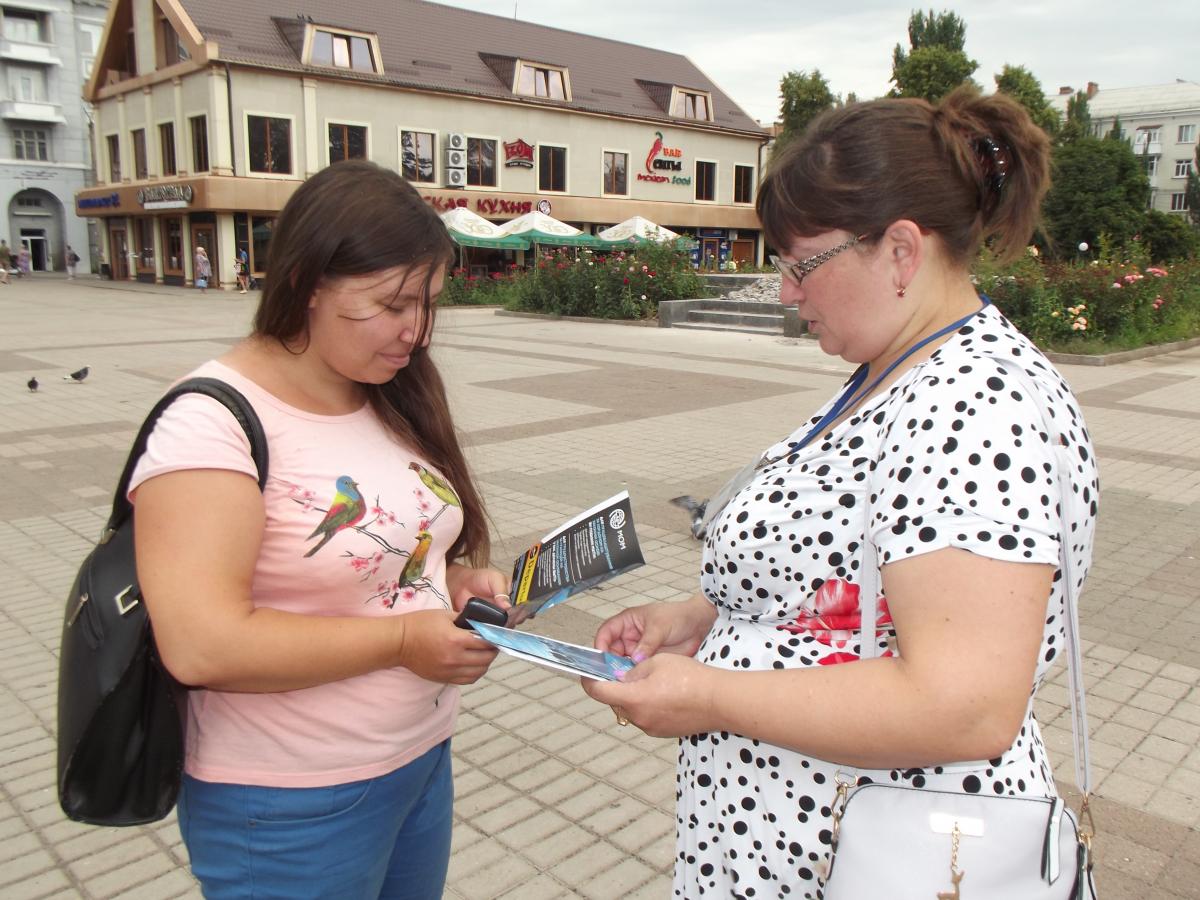 Мета акції - підвищення обізнаності молоді про цю глобальну проблему та привернення уваги до тяжкого становища жертв торгівлі людьми, а також заохочення людей активно допомагати і протидіяти цьому злочину. Фахівці Бахмутського МЦЗ знайомили молодь з ускладненнями, що можуть виникнути при працевлаштуванні за межами країни, інформували про найгірші форми експлуатації, консультували молодих людей - як зменшити ризики «стати живим товаром» при працевлаштуванні за кордоном. Кожен учасник акції отримав пам’ятку з рекомендаціями з легального працевлаштування за кордоном та телефоном гарячої лінії 0800-050-501.